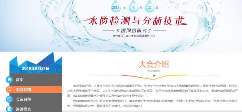 仪器信息网联手四川省分析测试服务中心,携手水质分析测试领域的专家大咖,于8月21日为广大网友带来“水质检测与分析技术”专题网络研讨会,精彩报告不容错过,欢迎您的加入!