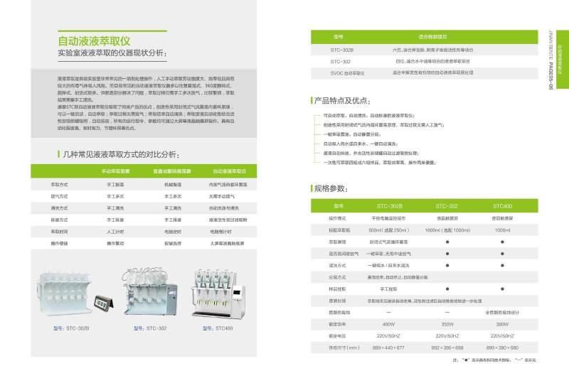 盛泰STC型自动液液萃取仪吸取了同类产品的优点,避开了不足,创造性采用封闭式气流震荡内循环原理,可以一键启动,自动萃取;萃取过程无需放气;萃取结束自动清洗;萃取废液经由活性炭吸附罐吸附,自动排放,所有的运行指令、参数均可通过液晶触摸屏操作。具有自动化程度高、省时省力、节能环保等优点。